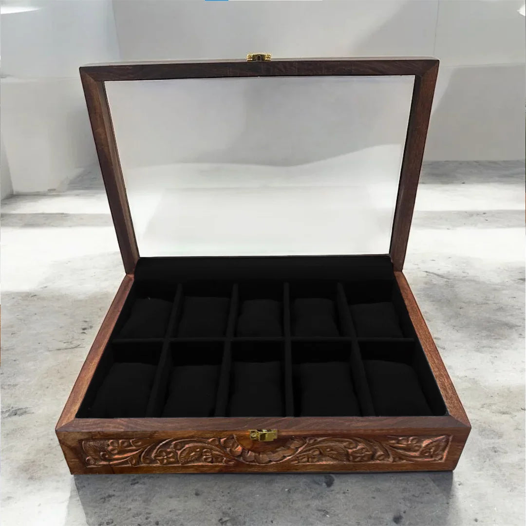 10 Watches – Carving – Glass Top – Black