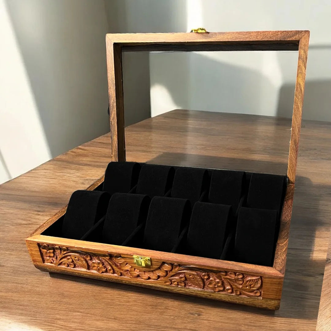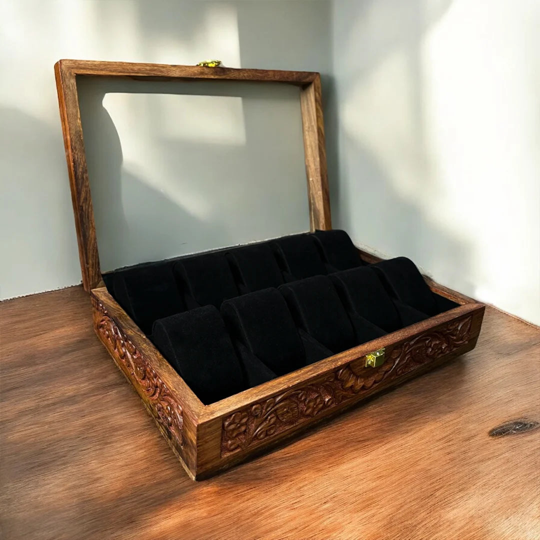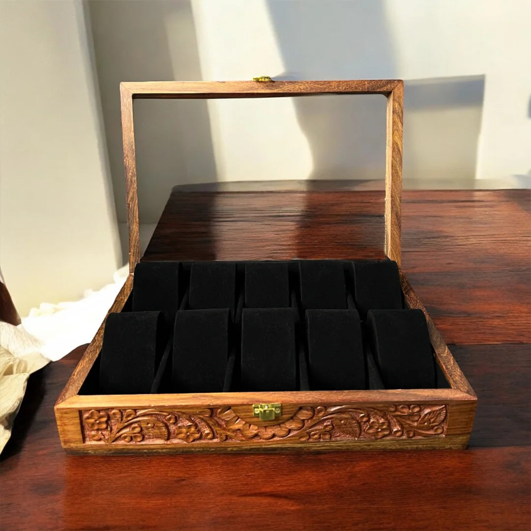 10 Watches – Carving – Glass Top – Black – Hard Pillows