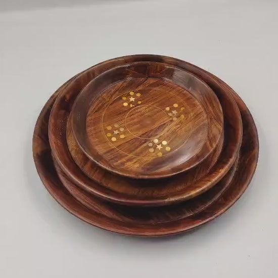 Natural Appeal: The Wooden Plates Set of 3 features a beautiful natural wood grain, adding a rustic and elegant touch to your dining experience.